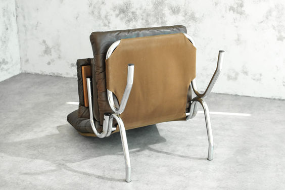 "Mid century" stiliaus natūralios odos, vintažinės būklės, labai ergonomiškas fotelis.