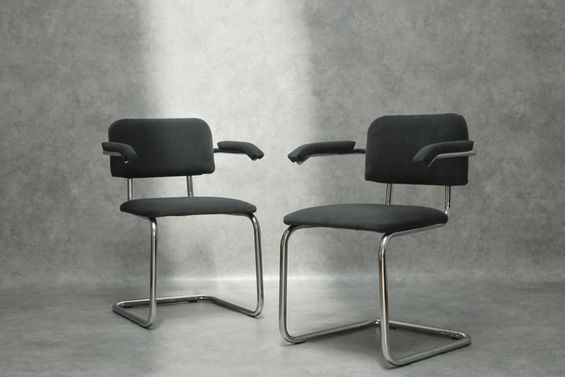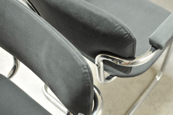 tai dar 1928m, Marcel Breuer sukurtos kėdės "Cesca" reprodukcija (taip nusprendėme, kadangi neradome jokių originalių ženklinimų). Ši kėdė ne veltui yra tarp TOP10 įspūdingiausių kėdžių XX amžiuje. Nieko nuostabaus - vamzdinis chromuotas plienas, buko mediena, audinys - genialumas slypi paprastume.