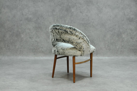 sukurta danų dizainerio Frode Holm dar 1950s. Vintažinė kėdė su nauju, ypatingai švelniu "triušio" kailiuku.